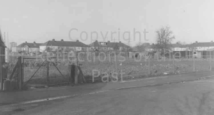 The Allotments at the south end of Brooker Road. Now part of Brooker Road Industrial Estate. Audley Gardens houses can be seen in the background.