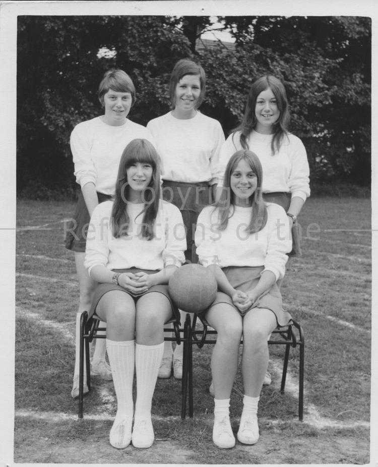 Girls netball team shot on the school field. We need the year and the names of the girls.