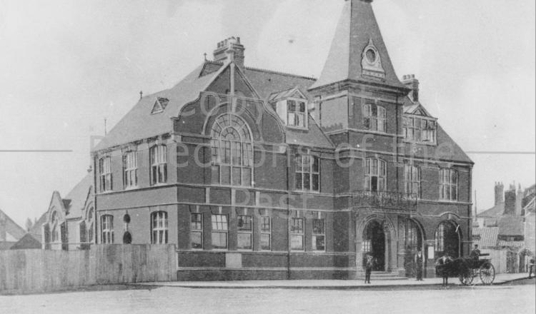 Waltham Abbey Town Hall, built by John Bentley Builders. Note the two arched doorways to the right of the front door. These were for use by the local volunteers fire brigade for their horse drawn engine. After 1923 they had a motor fire engine, which was housed here until during the second world war, when the fire station was transferred to the Romeland. This picture 1905.