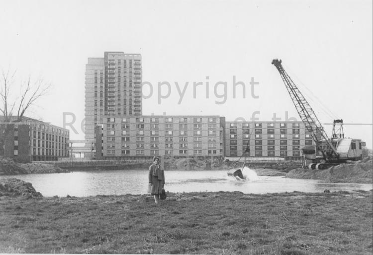 Gravel winning on Waltham Marshes with the Holdbrook tower block and flats in the background. This picture c1970.
