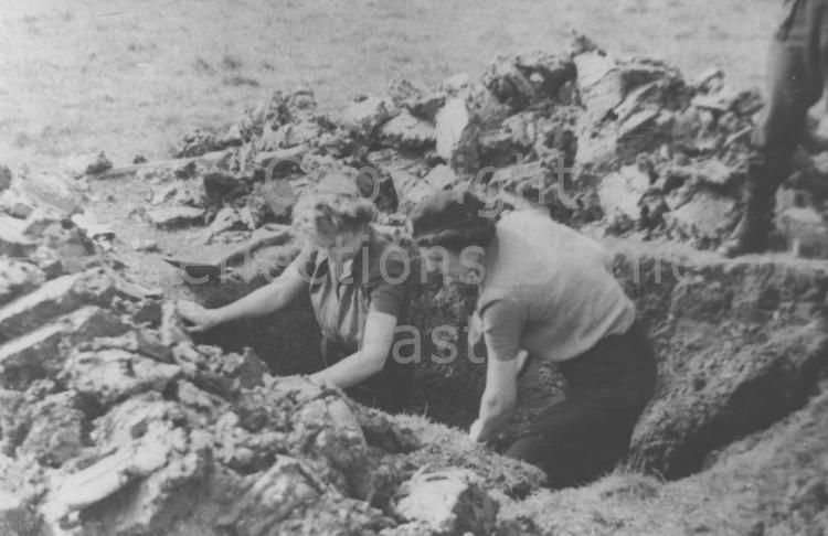 Kath Stewart and Jane Eldred dig out Incendiary bombs at Monkhams, Crooked Mile. This picture 1944.