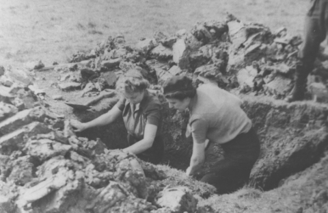 Kath Stewart and Jane Eldred dig out Incendiary bombs at Monkhams,...