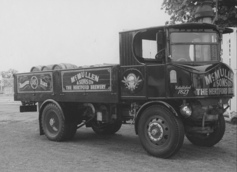 A McMullens Sentinel Steam Beer Delivery Wagon, pictured in 1985.